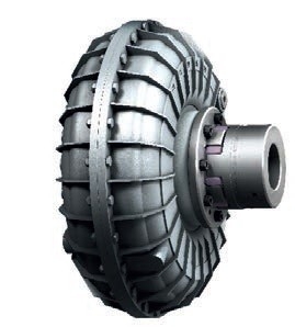 The drive of this KTR fluid coupling is provided via the rotation of the hollow shaft with integrated paddle wheel. The output is achieved via the induced rotation of the outer shell.